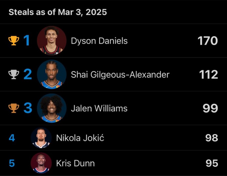2025年05月08日 鴨梨34分&正負值+51 約基奇3節(jié)犯滿 雷霆43分大勝掘金追至1-1