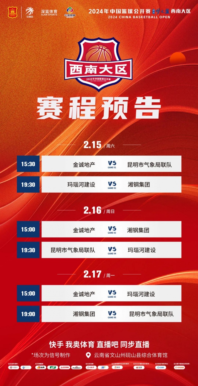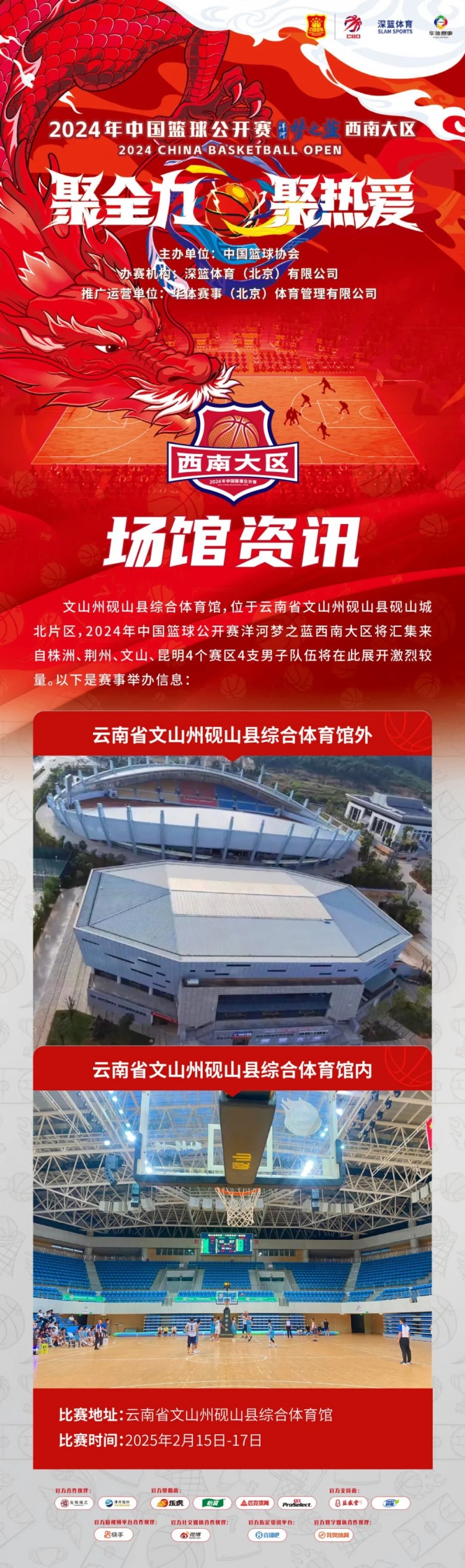 2月15日-17日,2024年中國(guó)籃球公開(kāi)賽洋河夢(mèng)之藍(lán)西南大區(qū)賽將在云南省文山州硯山縣綜合體育館舉辦,來(lái)自西南賽區(qū)各省市的4支男籃隊(duì)伍將在文山硯山激烈爭(zhēng)奪通往全國(guó)總決賽的入場(chǎng)劵。新年伊始,齊聚文山,誰(shuí)能在這場(chǎng)激烈競(jìng)爭(zhēng)中突出重圍,捧起通過(guò)全國(guó)總決賽的希望之鑰,讓我們拭目以待!