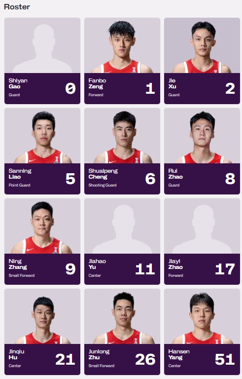 后衛(wèi):趙睿、高詩巖、徐杰、廖三寧、程帥澎;