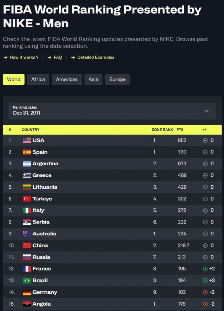 相對而言,國際籃聯(lián)FIBA對于世界排名的計(jì)算就不太被關(guān)注了,不僅在于它的算法更為繁瑣和復(fù)雜,更在于一直以來都頗有幾分神秘色彩。