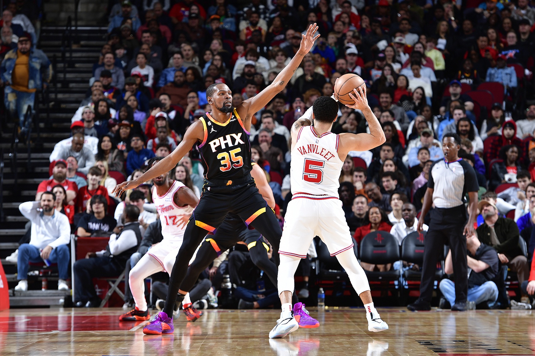 火箭是太陽完美的交易伙伴,主要有兩個原因。首先,杜蘭特完美填補了火箭最大的短板。憑借年輕的核心陣容和強悍的防守,火箭正在西部崛起。但他們?nèi)狈σ晃荒軌驇ьI球隊爭冠的頂級得分手,根據(jù)Cleaning the Glass網(wǎng)站的數(shù)據(jù),本賽季火箭的半場進攻效率僅排名聯(lián)盟第25位。即使已經(jīng)36歲,杜蘭特也能在這一領域帶來顯著提升,他的使用率和真實命中率都遠高于火箭輪換陣容中的任何一名球員。其次,火箭控制著太陽2025年、2027年和2029年的首輪簽,這些首輪簽最初是太陽在交易杜蘭特時送給籃網(wǎng)的。重新獲得部分或全部首輪簽將使太陽能為杜蘭特時代畫上圓滿句號,同時也讓球隊能夠在未來自由操作,而不必擔心失去樂透簽的風險。