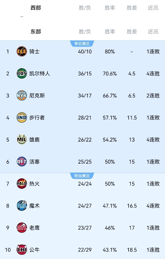 本場比賽過后,騎士的戰(zhàn)績來到40勝10負(fù),戰(zhàn)績下滑至聯(lián)盟第二;雷霆(今天沒有比賽)上升至聯(lián)盟第一。