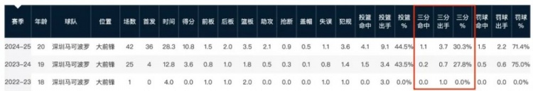 雖然標(biāo)榜的是“空間型四號(hào)位”,但有解說會(huì)在提到王浩然時(shí)用“非空間點(diǎn)”來形容他,他像MPJ那樣大跳投,但卻沒有MPJ的準(zhǔn)度,30.3%的三分球命中率在小球時(shí)代確實(shí)是不夠看......