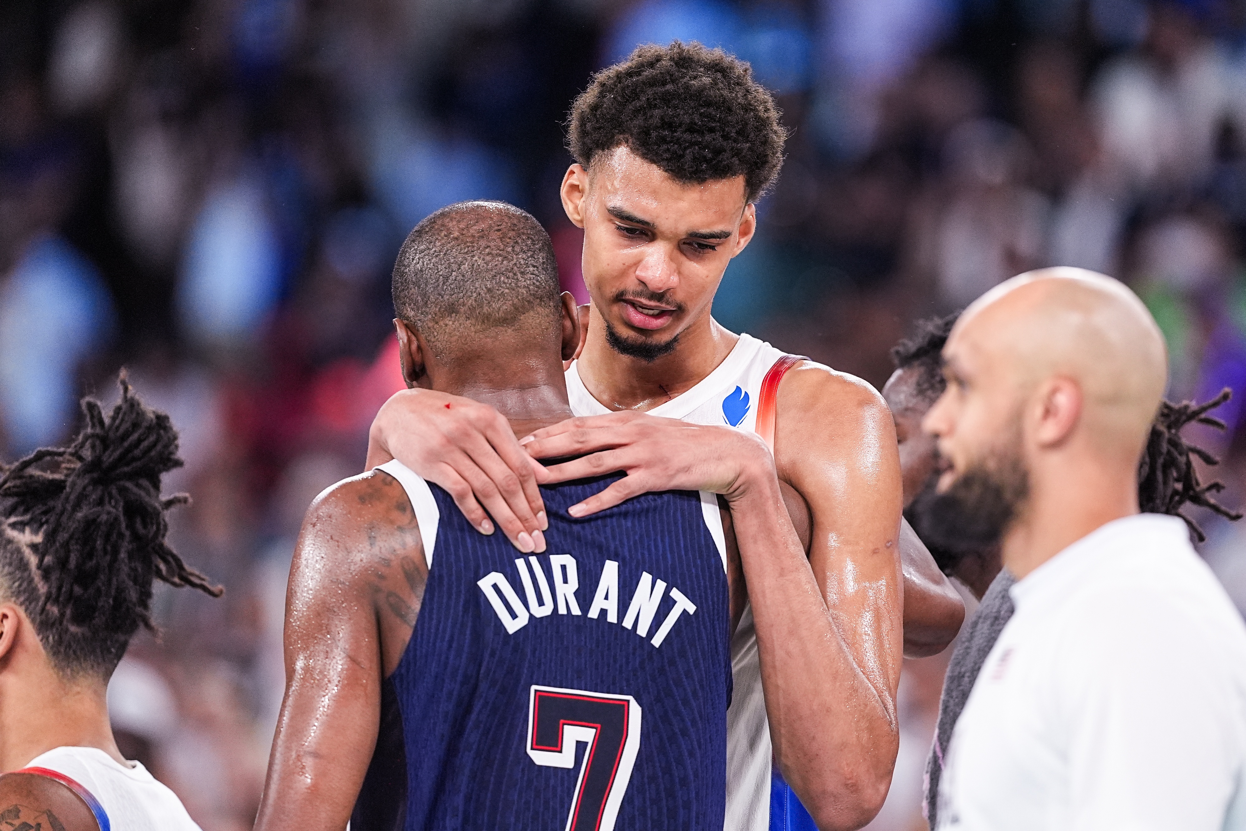 去年夏天,當代表法國男籃的維克托-文班亞馬在其家鄉(xiāng)舉辦的奧運會上距離金牌僅差一場勝利時,他感到很難過……為那些擋在他和他的目標之間的對手感到難過。