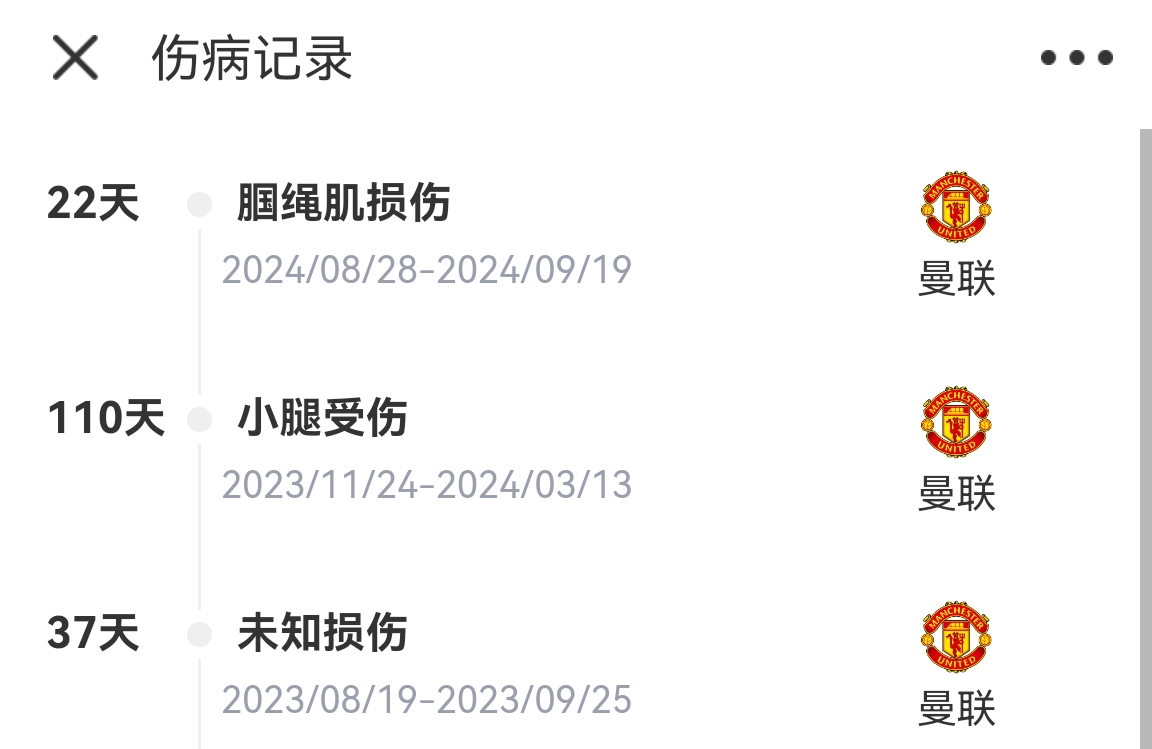 3、2024.8.28-2024.9.19,傷缺22天,錯過3場比賽