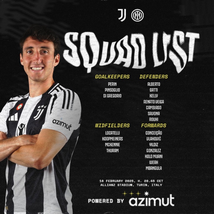2月16日訊 北京時間明天凌晨3點45分,尤文將在意甲第25輪比賽中主場對陣國米。尤文公布了此役的球員名單,坎比亞索復出,道格拉斯-路易斯、卡巴爾、米利克、布雷默、卡盧盧缺席。