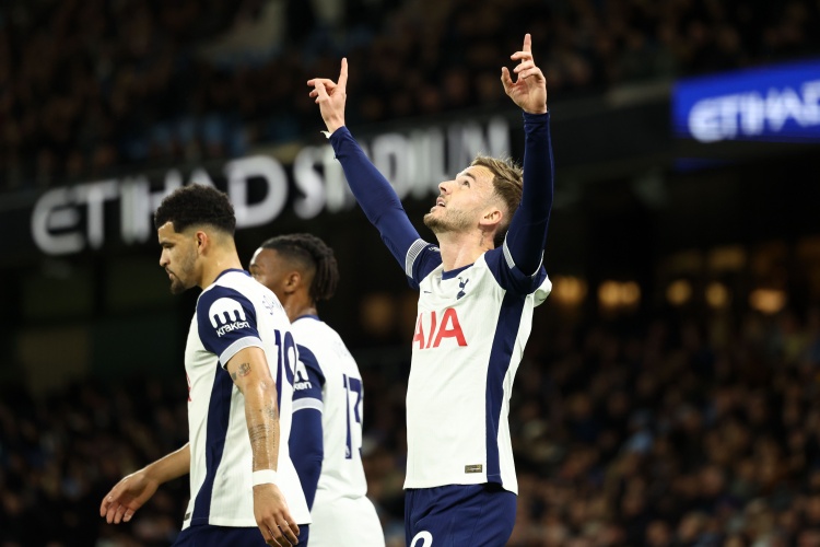 2月17日訊 英超第25輪焦點(diǎn)戰(zhàn),熱刺對(duì)陣曼聯(lián)。第12分鐘,麥迪遜補(bǔ)射破門,幫助熱刺拔得頭籌。