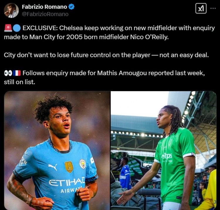 報道稱藍(lán)軍希望在中場位置引進(jìn)新援,已經(jīng)向曼城詢問奧賴?yán)那闆r。曼城不想失去對于奧賴?yán)磥淼恼瓶?,所以交易并不容易達(dá)成。切爾西還詢問了阿穆古的情況,他也仍在引援名單之中。