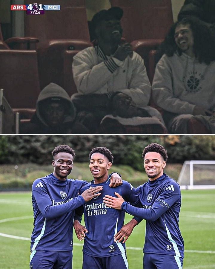 18歲斯凱利和17歲恩瓦內(nèi)里先后破門,看臺(tái)上23歲薩卡“老懷大慰”