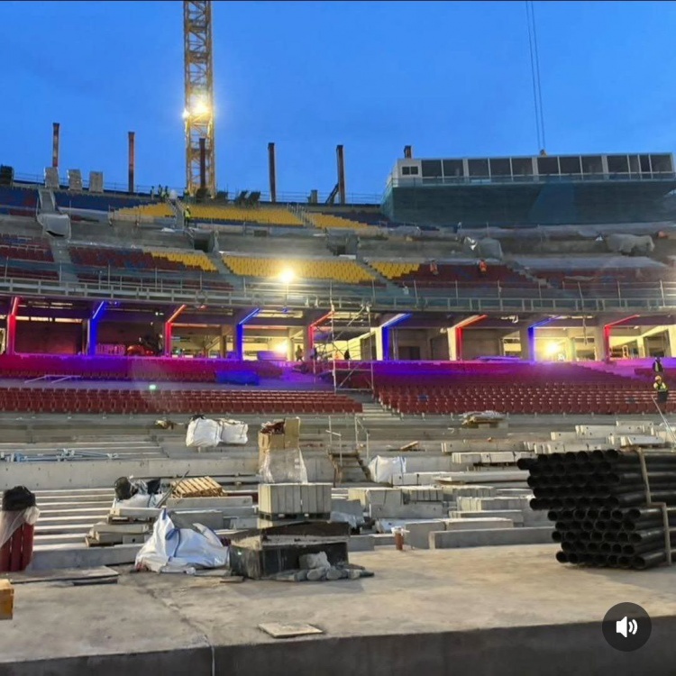 巴薩翻新諾坎普球場,相關(guān)工程正在進行中,媒體曬出施工照片,確認(rèn)諾坎普球場仍在測試第一層看臺的照明系統(tǒng)。