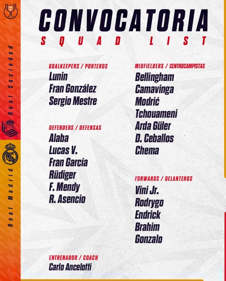 前鋒:維尼修斯、羅德里戈、恩德里克、卜拉欣-迪亞斯、貢薩洛-加西亞