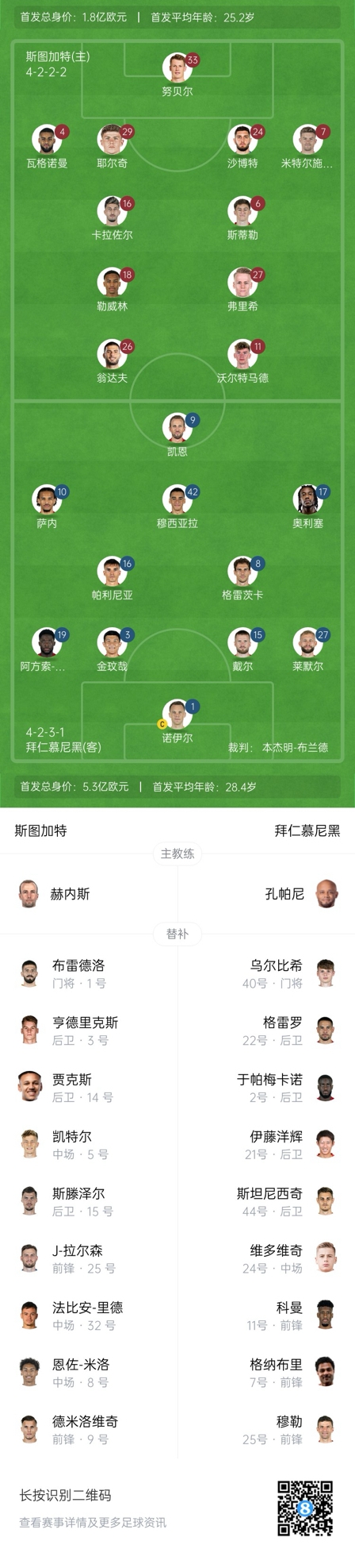 3月1日訊 德甲第24輪,斯圖加特主場(chǎng)迎戰(zhàn)拜仁慕尼黑,賽前首發(fā)名單公布。