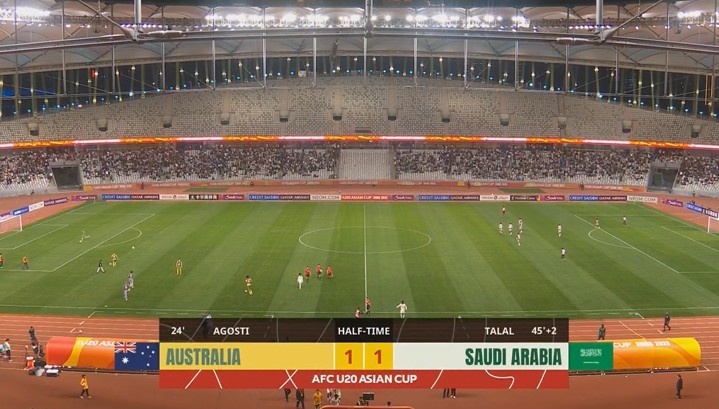 沙特U20出場陣容:22-哈米德、12-古萊米什、5-穆罕默德-巴納維、6-薩勒赫-巴納維、19-阿曼、13-巴薩姆、14-沙姆拉尼、17-拉克瓦尼、9-哈吉、11-薩德、15-于海比