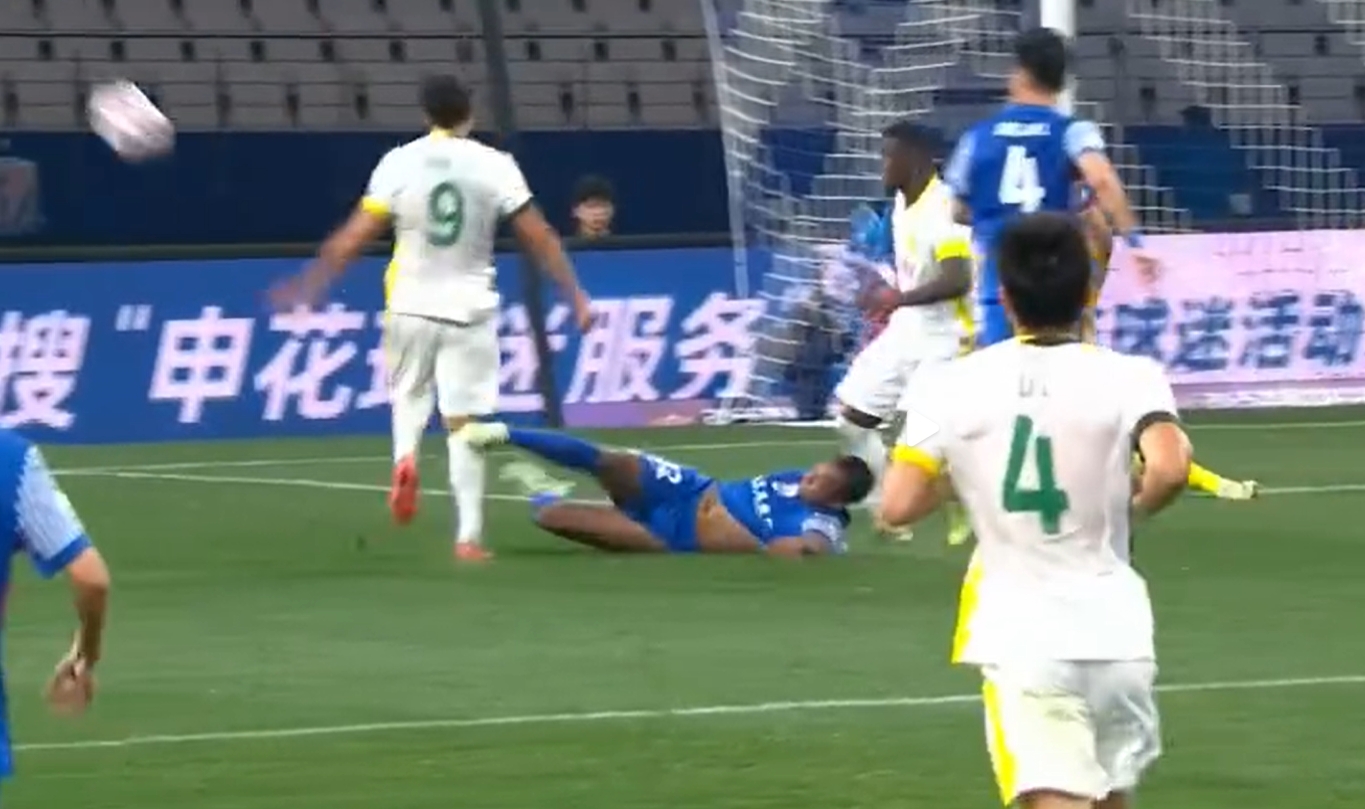 艾迪禁區(qū)內(nèi)亮鞋底鏟到張玉寧小腿,裁判麥麥提江沒有表示