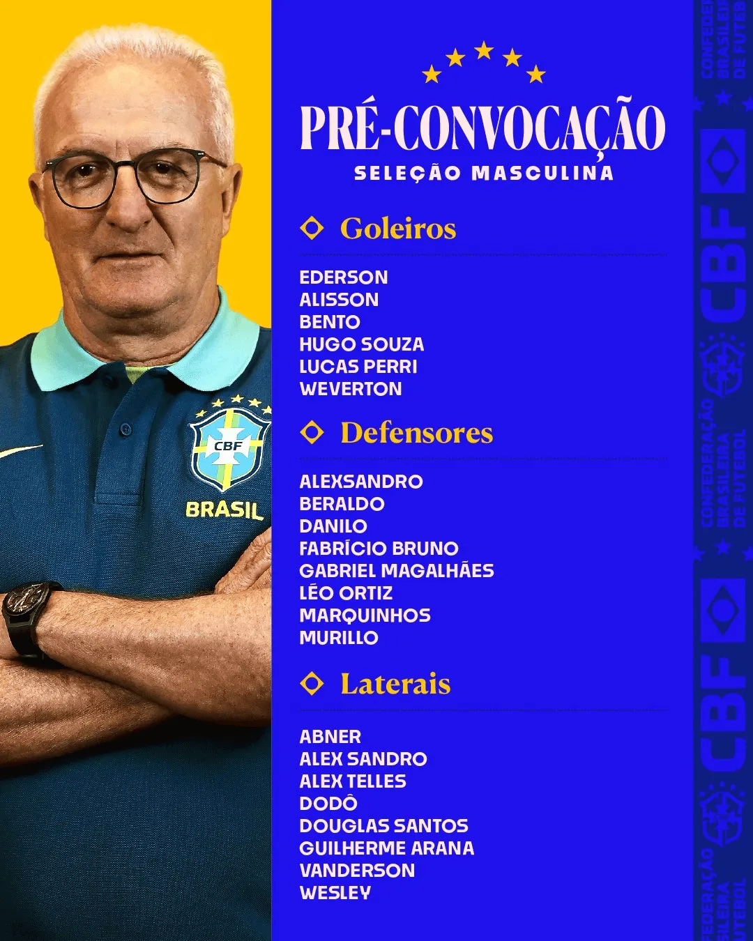 巴西足協(xié)此前公布了一份由多里瓦爾選定的52名球員名單,他們將參加3月份的世預(yù)賽。巴西隊(duì)將于20日和25日分別對陣哥倫比亞和阿根廷。