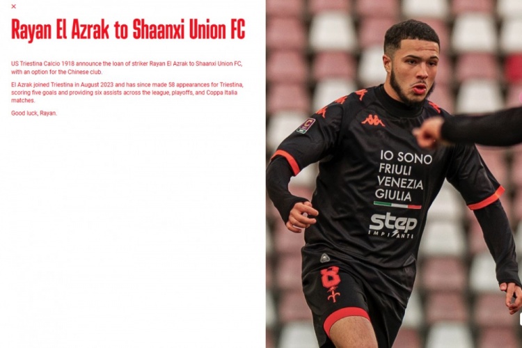 2月4日訊 意丙球隊特里埃斯蒂納官方宣布,荷蘭球員拉揚-埃爾阿茲拉克以租借并附帶買斷條款的方式加盟陜西聯(lián)合。