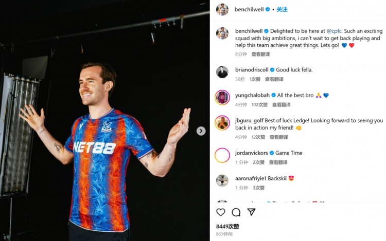 奇爾維爾曬出自己身披水晶宮球衣的定妝照,并表示:“很高興能夠加盟水晶宮。這支球隊(duì)有著非凡的雄心。我已經(jīng)迫不及待想要重返球場(chǎng)并隨隊(duì)取得偉大成就了。讓我們加油吧!”