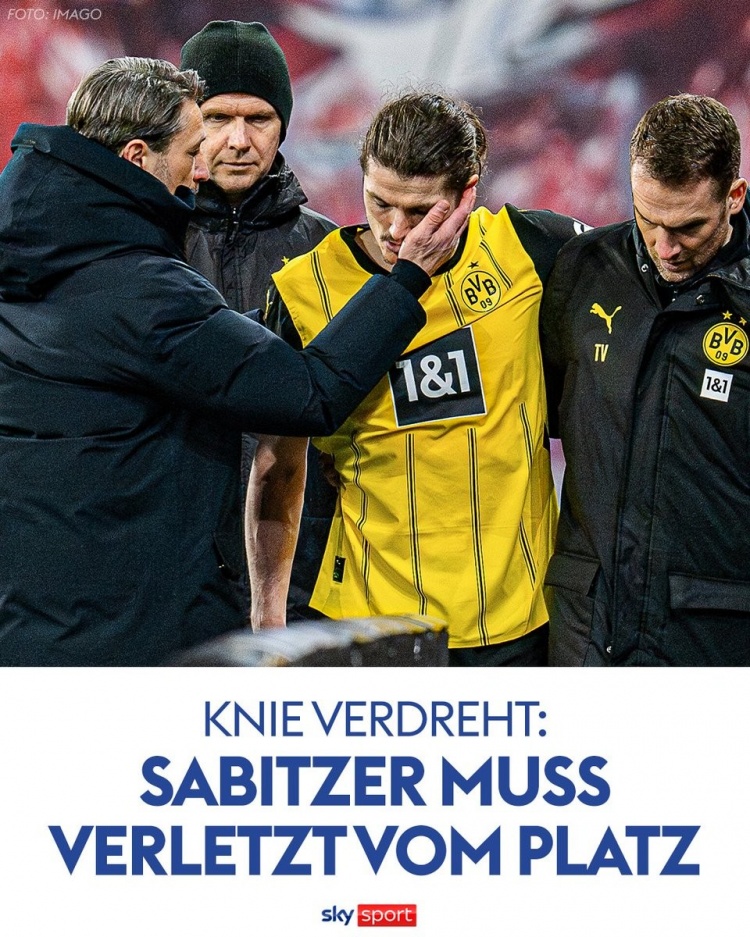 3月16日訊 多特在本輪德甲0-2不敵萊比錫,中場(chǎng)薩比策傷退。