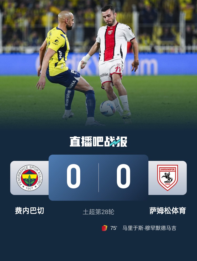 03月17日訊 今天凌晨土超第28輪,費內巴切0-0打平薩姆松體育,少賽一場的情況下,落后榜首9分。