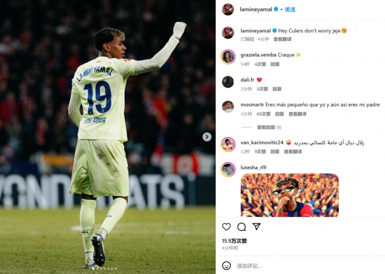 數(shù)據(jù)統(tǒng)計顯示,亞馬爾也就此結(jié)束了長達4個半月的西甲進球荒,他本人也通過社媒曬照慶祝:“嘿,巴薩球迷們,別擔(dān)心,哈哈????”。
