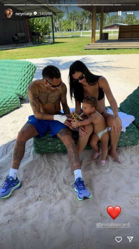 今天,內(nèi)馬爾在社交媒體上曬出自己與伴侶布魯納以及孩子的合照,看起來一家人并沒有受到場外風波的影響。