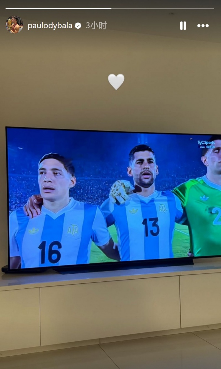3月22日訊 南美區(qū)世預(yù)賽第13輪,阿根廷1-0擊敗烏拉圭。有傷在身的迪巴拉在家中收看了比賽,為阿根廷加油。