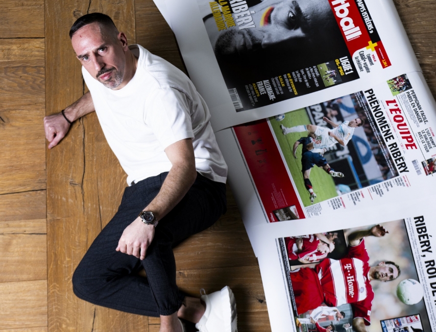 第二天,在慕尼黑森林邊緣的家中,這位五個(gè)孩子的父親接受了《隊(duì)報(bào)》的專(zhuān)訪(fǎng)。在他那間擺滿(mǎn)了2013年歐冠獎(jiǎng)杯復(fù)制品、九座德甲冠軍獎(jiǎng)牌和簽名球靴的豪華獎(jiǎng)杯陳列室里,里貝里敞開(kāi)心扉,暢談了許多。