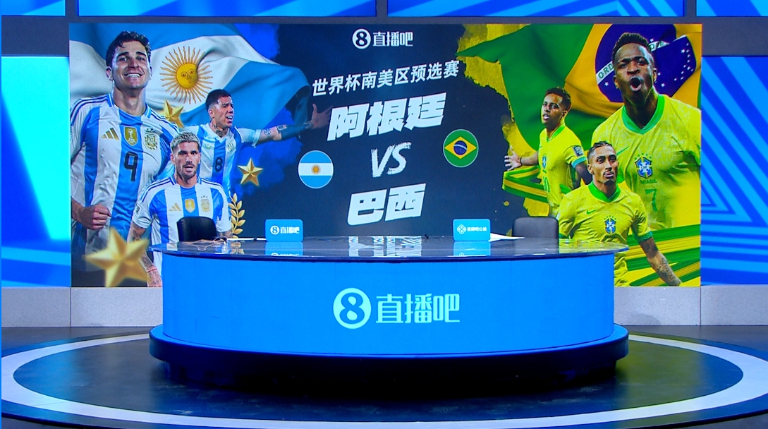 直播吧演播室準(zhǔn)備就緒,靜待南美德比!于鑫淼、王正坤解說