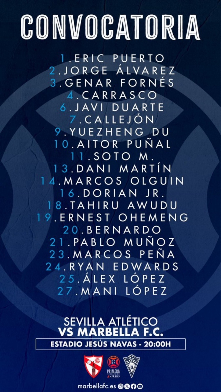 3月29日訊 馬貝拉公布了客場(chǎng)對(duì)陣塞維利亞競(jìng)技的比賽大名單,中國(guó)球員杜月徵入選。