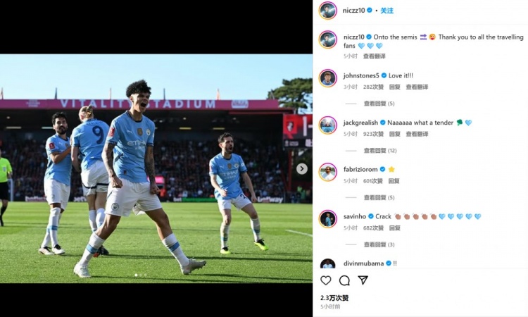 奧賴?yán)苍谫惡笸ㄟ^社媒曬出自己的慶祝照并配文:“晉級(jí)半決賽????????感謝所有的遠(yuǎn)征球迷????????????”。包括斯通斯和格拉利什在內(nèi)的多位隊(duì)友也現(xiàn)身評(píng)論區(qū)鼓勵(lì):“愛了愛了”、“多棒的自我展示!”…