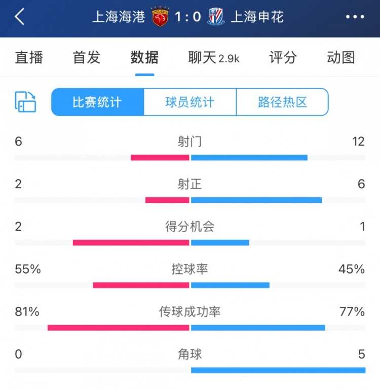 2月7日訊 2025中國超級杯賽,上海海港憑借新外援加布里埃爾的破門,在上半場1-0領(lǐng)先申花。半場數(shù)據(jù)方面,落后的申花更有優(yōu)勢,但海港把握機(jī)會的能力更強(qiáng)。