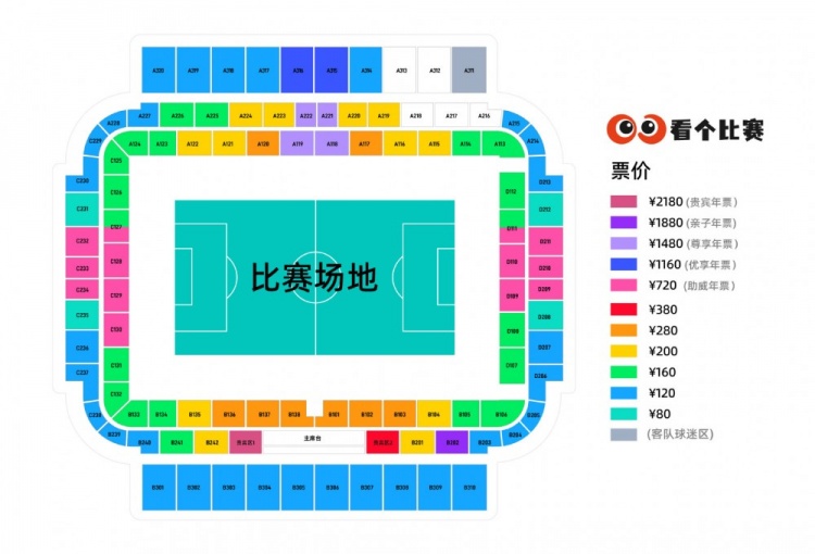 2.C、D區(qū)二層助威年票區(qū)域觀賽時(shí)將會(huì)受旗陣等因素影響視線,請(qǐng)慎重確認(rèn)后購(gòu)買。