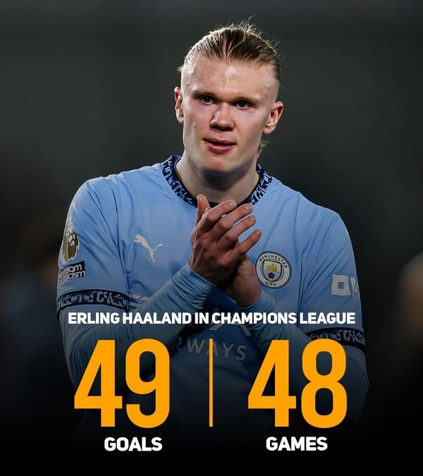 歐冠淘汰賽附加賽首回合,曼城主場2-3遭皇馬逆轉(zhuǎn)。哈蘭德本場比賽梅開二度,生涯48場歐冠打進(jìn)49球,距50球里程碑僅一步之遙。