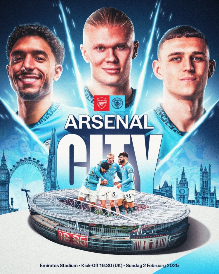 2月2日訊 北京時間明天凌晨00:30的英超焦點(diǎn)大戰(zhàn),曼城將前往酋長球場對陣阿森納。賽前,曼城曬出海報,預(yù)熱這場比賽。
