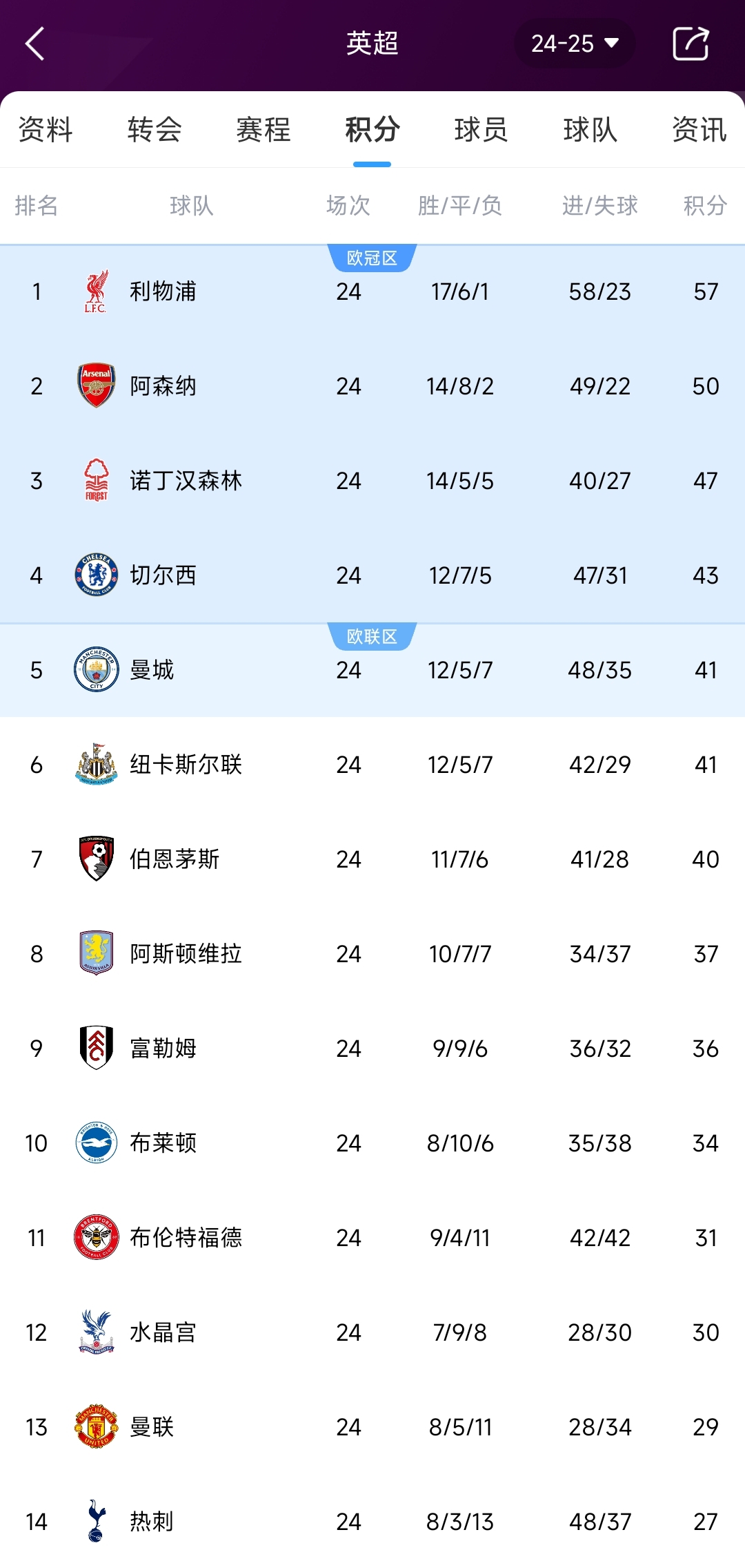 02月13日訊 英超第15輪補(bǔ)賽,利物浦2-2遭埃弗頓絕平,此役過后,利物浦24輪英超積57分,即使后續(xù)14輪比賽全勝,最多也只能達(dá)到99分,無緣打破曼城的單賽季最高積分紀(jì)錄。