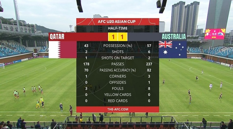 第19分鐘,卡塔爾反擊機會,賈姆希德右路推進下底,隨后低平球橫傳,后點哈立德-古達(dá)搶點攻門得手,卡塔爾U201-0澳大利亞U20。↓