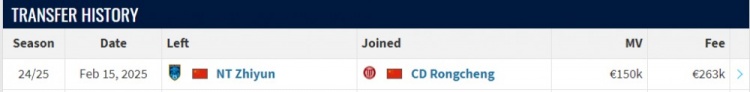 2月15日訊 《轉會市場》顯示,前南通支云球員楊明洋正式加盟成都蓉城,轉會費為26.3萬歐元,約合人民幣200萬元。